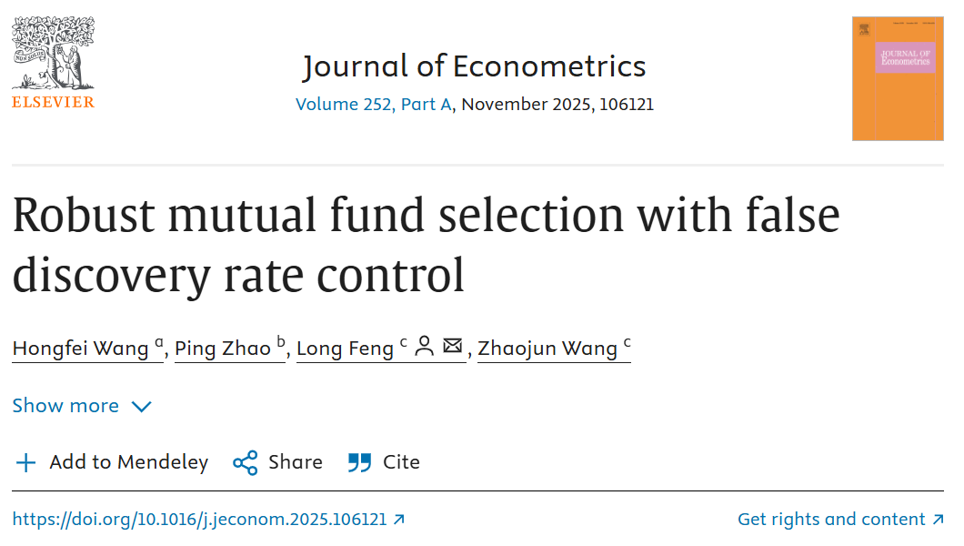 我校教师王虹飞论文在计量经济学顶刊JOE发表