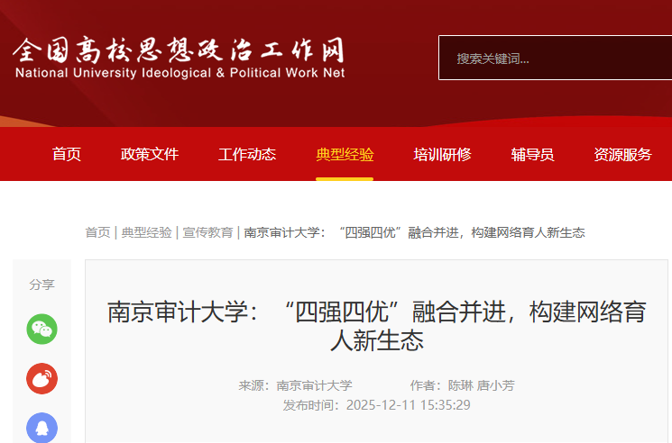 【全国高校思政工作网】南京审计大学:“四强四优”融合并进,构建网络育人新生态