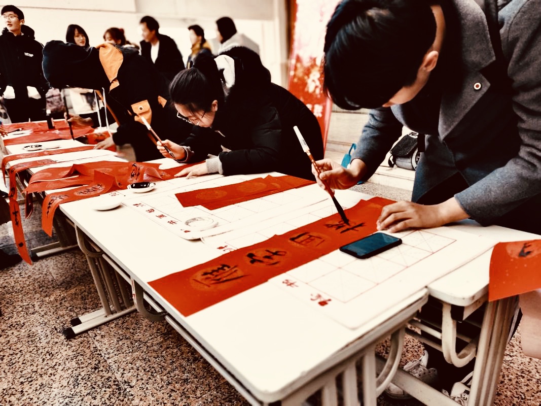 为了迎接崭新的2020年,丰富同学们的精神文化生活,帮助同学们了解中华传统文化的精髓,提高同学们的文化素质,同时也为同学们提供了展现自我文化素养和个人的文化底蕴的平台,缓解同学们的日常学习压力,让润园书院更加温馨。润园书院开展“喜迎元旦写春联”活动,活动设沁园餐厅、润园餐厅2个分场同时进行。