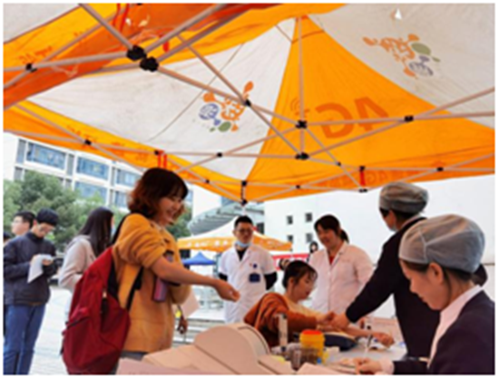 填写表格,测量血压,检测血液,排队献血,一切井然有序,同学们对献血工作充满热情,奉献出一颗颗爱心。一位献血者说:“我觉得这是一件很有意义的事,能在自己力所能及的范围内帮助到别人,这让我很开心。”
