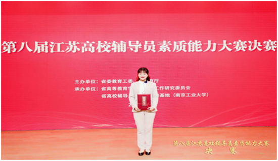 11月27-28日,第八届江苏省高校辅导员素质能力大赛总决赛在南京工业大学江浦校区举行,来自全省辅导员培训与研修基地选送的40名选手参赛,我校辅导员澄园书院杨婷老师荣获决赛三等奖。