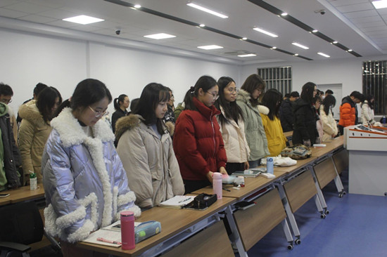 晚上6点半,国际联合审计学院靳镇通老师为同学们带来国家公祭日专题讲座。讲座开始时,师生全体起立,为南京大屠杀遇难同胞默哀一分钟。随后,靳镇通为同学们讲述了南京大屠杀的历史,特别是“落后就要挨打”的教训,使大家更加深刻地认识到教育和科技对于国家发展和民族兴旺的重大意义。
