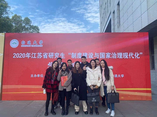 11月27日至29日,江苏省研究生“制度建设与国家治理现代化”学术创新论坛在南通召开。本次会议由省哲法史类研究教育指导委员会主办,南通大学承办。来自南京大学、东南大学等14所高校的10余名专家学者、80余名研究生参会研讨。我校法学院10名硕士研究生应邀参加。