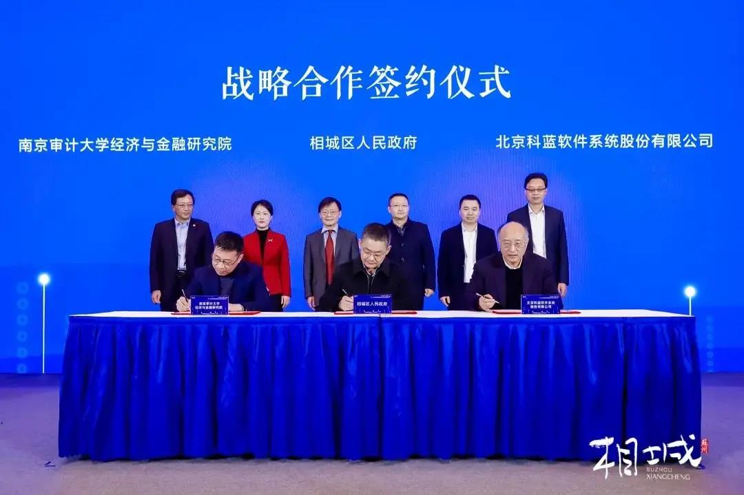 揭牌仪式后,相城区与我校经济与金融研究院、北京科蓝软件系统股份有限公司进行了战略合作签约仪式。相城区与我校经济与金融研究院、北京科蓝软件系统股份有限公司将整合各方资源,围绕理论攻关、产业赋能、人才培养等方面展开合作,推动相城区建设长三角数字金融产业高地。