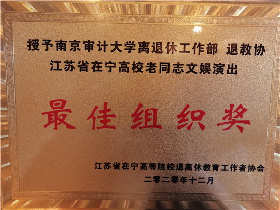 为庆祝全国人民在党中央的领导下抗击疫情取得经济恢复双胜利,在宁高校退教协主办江苏省在宁高校老同志文艺汇演。我校离退休工作部组织广大老同志积极参加,根据王亚伦老师原创歌曲《平凡的美丽》,历时1个月左右时间,拍摄同名原创MV。该MV由南京审计大学离退休紫藤合唱团参与演出,目前点击率已超过5千次,荣获“江苏省在宁高校老同志文娱演出”最佳组织奖。