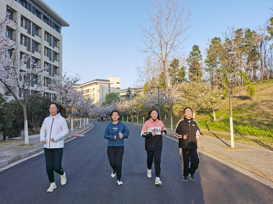IBA2班的李阳说:“看樱花纷飞,闻鸟虫啼鸣,听书声琅琅,阅中外典经。‘数卷新书香篆息,园花落尽到荼蘼’,我在晨跑晨读中体会到了古诗里描绘的美好情形。”