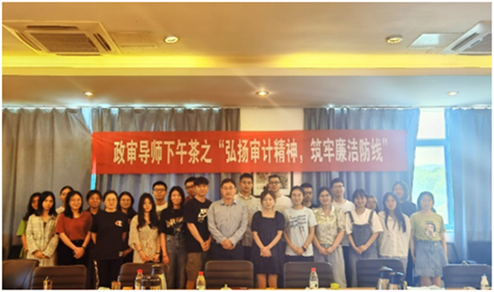 5月25日下午,由政府审计学院研究生会主办的第四期“政审导师下午茶”之“弘扬审计精神,筑牢廉洁防线”主题讲座在敏行四楼会议室成功举行。此次讲座邀请我校政府审计学院党委副书记、副院长戚振东教授作为嘉宾。