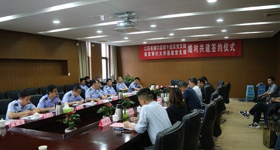 为全面推进党史学习教育深入开展,促进校地基层党组织开展结对共学共建活动,5月26日下午,总务党总支基建党支部与江苏省浦口监狱基层第三党总支十监区党支部举行“学党史 报党恩 守廉洁 办实事”结对共学共建协议签约仪式。江苏省浦口监狱基层第三党总支书记张红军、总务党总支书记徐振龙及双方党员代表参加活动。会议由总务党总支宣传委员、基建处副处长丁舰丰主持。