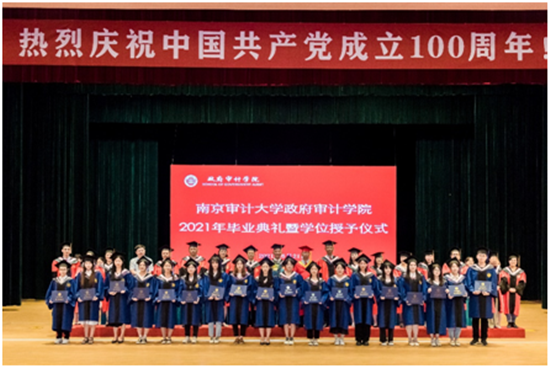 6月21日晚,政府审计学院2021年毕业典礼暨学位授予仪式在审计署审计干部教育学院学术报告厅举行。校党委副书记、副校长王会金,优秀校友代表、审计署南京特派办副特派员范厚胜,研究生院院长陈骏,沁园书院党委书记刘宏宇应邀出席典礼。政府审计学院院长周维培、国家审计研究院执行院长王素梅、政府审计学院副院长戚振东、王士红、李兆东、刘静以及学院全体教职工,2021届毕业研究生、本科生及家长代表、2020届部分毕业生共600余人参加典礼。典礼由政府审计学院党委书记童瑞连主持。