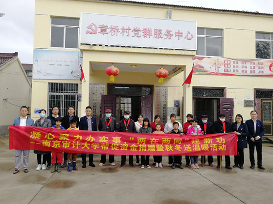 在我校挂钩帮促的淮安市淮安区苏嘴镇章桥村,我校一行认真听取了驻村队员的工作汇报,实地察看了党员活动室、残疾人之家以及路灯亮化、河道绿化、道路硬化项目的实施情况,慰问4名光荣在党50年的老同志和6名家庭困难学生,祝福老同志健康长寿,勉励学生好好学习。钱琨代表审计干部教育协调办向章桥村村委会捐赠了5万元帮促资金,章桥村党总支书记王天义代表村委会接受了捐赠。