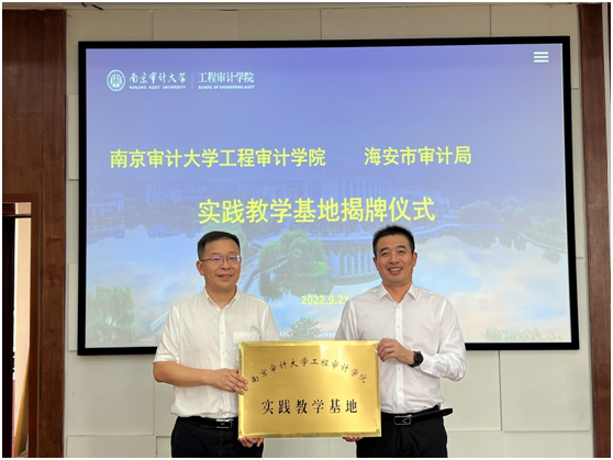 交流活动结束后,祝遵宏和尤建还为工程审计学院在海安市审计局设立实践教学基地揭牌。