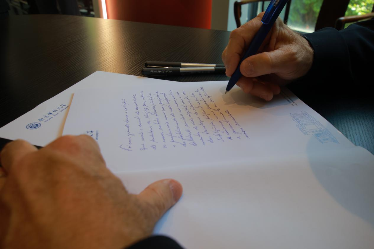 随后,赛德拉斯先生参观了留学生院,听取了学校国际化办学的最新成果。他对南审在培养国际化审计人才方面的持续探索与实践表示高度赞赏,并欣然提笔,题写寄语赠予我校师生。他在寄语中提到:“我怀着无比喜悦之情再次到访南京审计大学。在数字化浪潮席卷全球的今天,希望与南京审计大学深化双边合作,共同探索信息技术与人工智能在提升公共治理效能、优化政策决策中的创新应用。作为南京审计大学荣誉教授深感荣幸,作为南京审计大学的忠实合作伙伴,将继续致力于深化两国学术交流,促进知识共享与文明互鉴。”