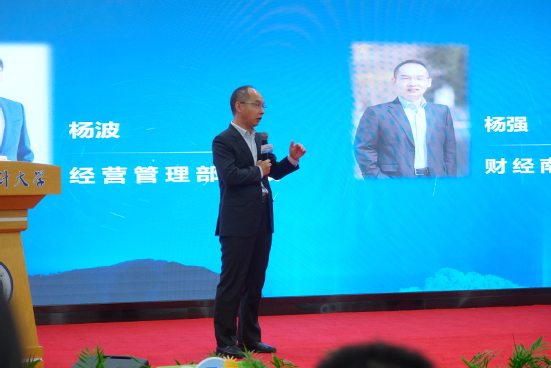 在校党委常委、副校长周方舒致辞后,华为财经经营管理部总裁杨波进行了主题宣讲,他通过“行业趋势是天时、成长平台是地利、同舟奋楫是人和”三个方面为在场学子勾勒出一幅清晰的未来职业发展图景。深入剖析了身处AI重塑万物时代的华为秉持“解难题、做难事”的精神,致力于构建万物互联的智能世界;详细介绍了华为全球化的业务布局与财经体系的战略角色;阐释了华为“同舟奋楫”的团队文化与精心构建的人才培养体系。他特别称赞了华为南审人的卓越表现,指出他们以扎实的专业功底和务实作风,在华为财经平台上快速成长,已成为团队的中坚力量,并热情欢迎更多优秀南审学子加入,共同成就未来。