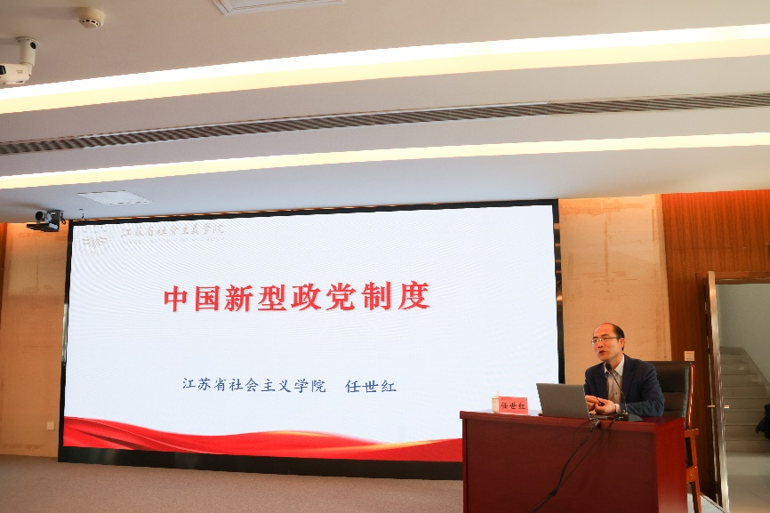 省社会主义学院任世红教授就中国新型政党制度主题作辅导报告,介绍了民主党派和无党派人士概况,分析了中国新型政党制度确立和发展的历史必然性,从政党制度国际比较视野阐释了中国新型政党制度的显著特征,及其在中国特色社会主义事业建设发展中的优势效能。