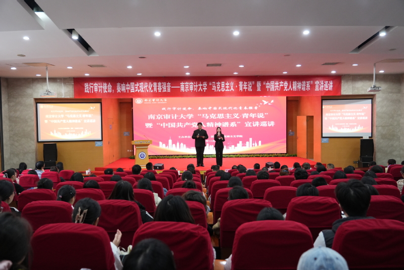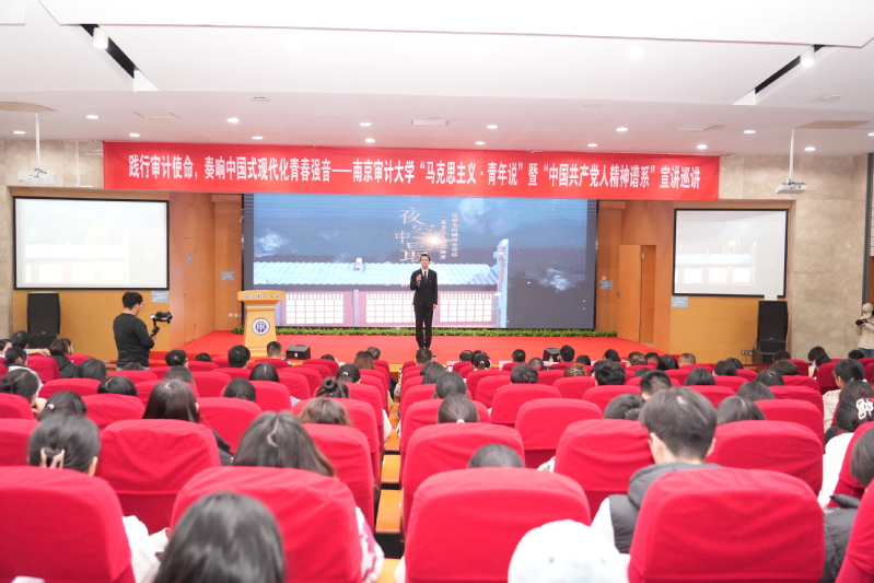 12月10日下午,南京审计大学“马克思主义·青年说”暨“中国共产党人精神谱系”宣讲巡讲在敏达学术报告厅一楼举行。校党委副书记陈中建出席,来自各领域宣讲员代表、相关职能部门、各二级党组织负责人及师生代表参加。