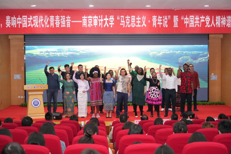 最后由2025级审计专业硕士国际班留学生用不同语言唱响的《国际歌》将现场气氛推向高潮,共感信仰共鸣。