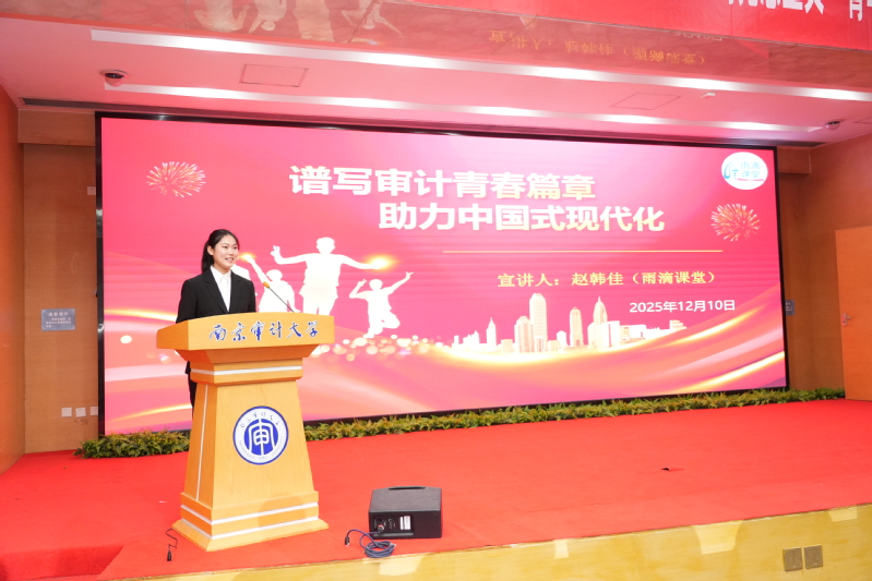 本次活动由党委宣传部、校团委、马克思主义学院联合举办,以“践行审计使命,奏响中国式现代化青春强音”为主题,特别邀请来自校外实务界专家和校内理论宣讲师生代表进行现场宣讲。各宣讲人紧扣党的二十届四中全会精神,围绕“中国共产党人精神谱系”要义,结合我校审计特色开展深刻生动的宣讲。