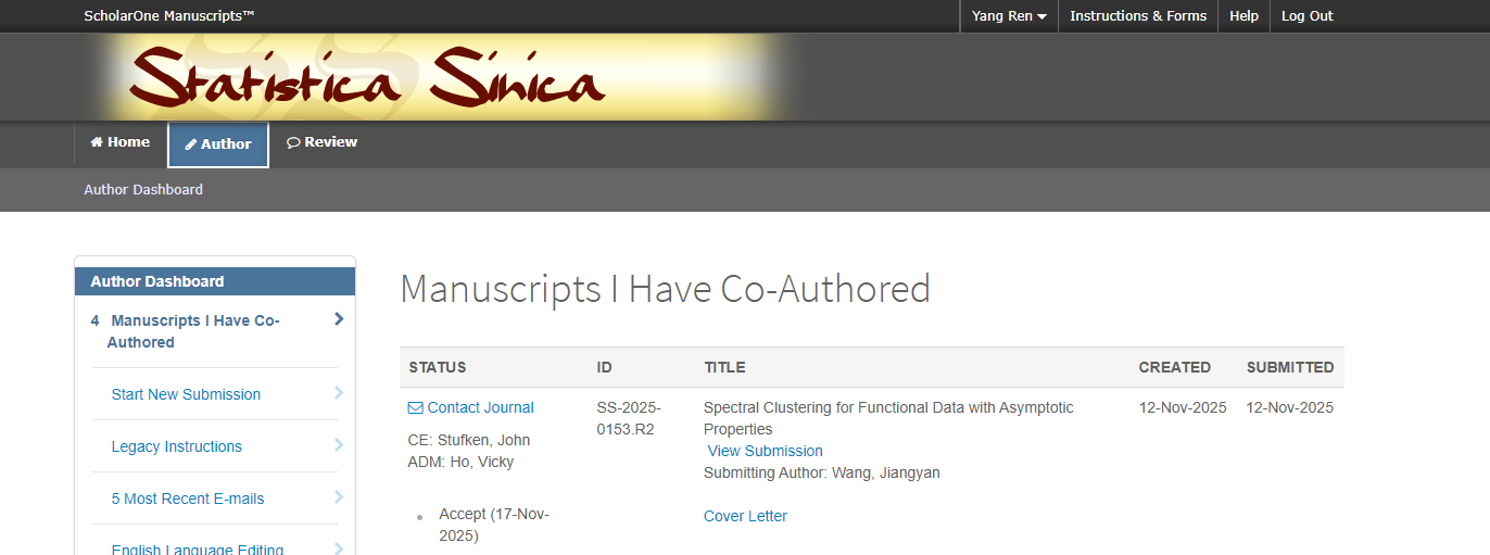 我校博士生论文被统计学权威期刊Statistica Sinica接收