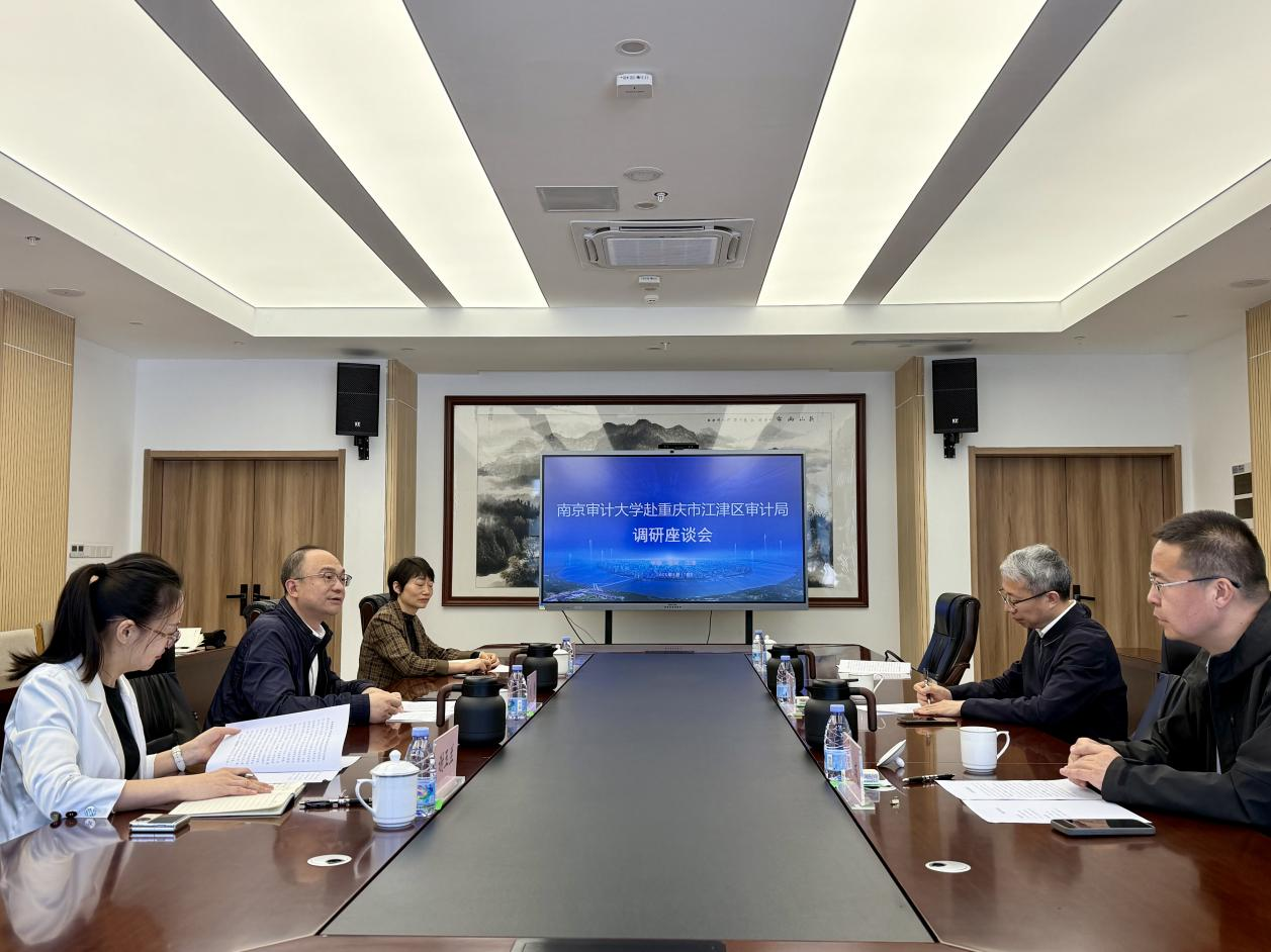姜海介绍了南京审计大学近年来的发展情况与未来发展规划。他表示,我校始终坚持以服务国家审计事业和地方经济发展为己任,积极推动“审计+”复合型人才培养模式改革。他希望以此次交流为契机,与江津区审计局进一步深化合作,实现资源共享、优势互补、双向赋能。同时,学校将继续依托校友的桥梁纽带作用,主动对接地方需求,及时更新理论课程内容,确保专业人才培养更加契合现实需求。