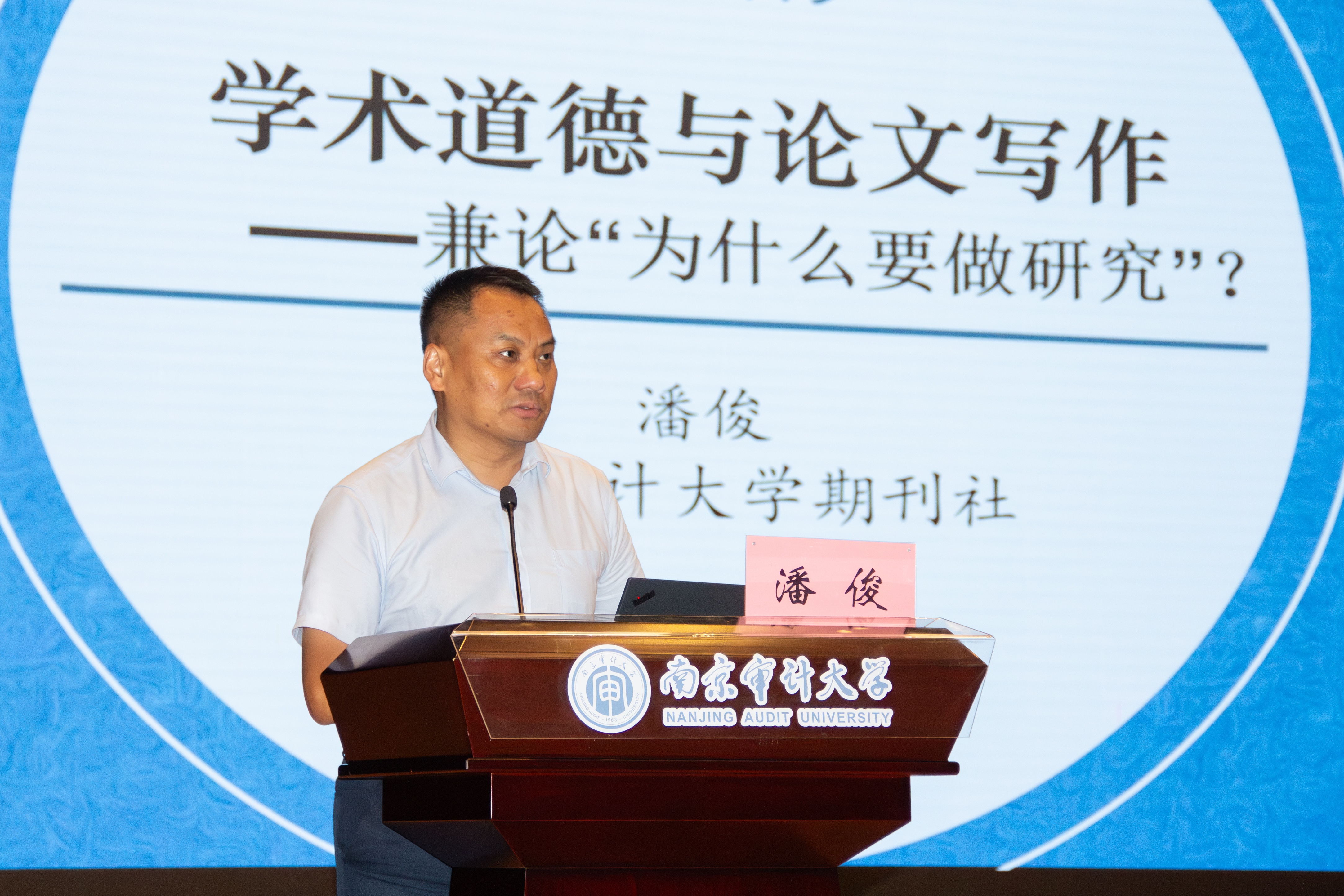 期刊社副社长潘俊作题为《学术道德与论文写作》的专题讲座。他结合自身科研与教学经验,引导学生树立正确科研观念。他表示,研究生阶段的学习大家要坚持“学”与“术”并重,科研不仅是学术必修课,更是培养“研商”的关键途径。