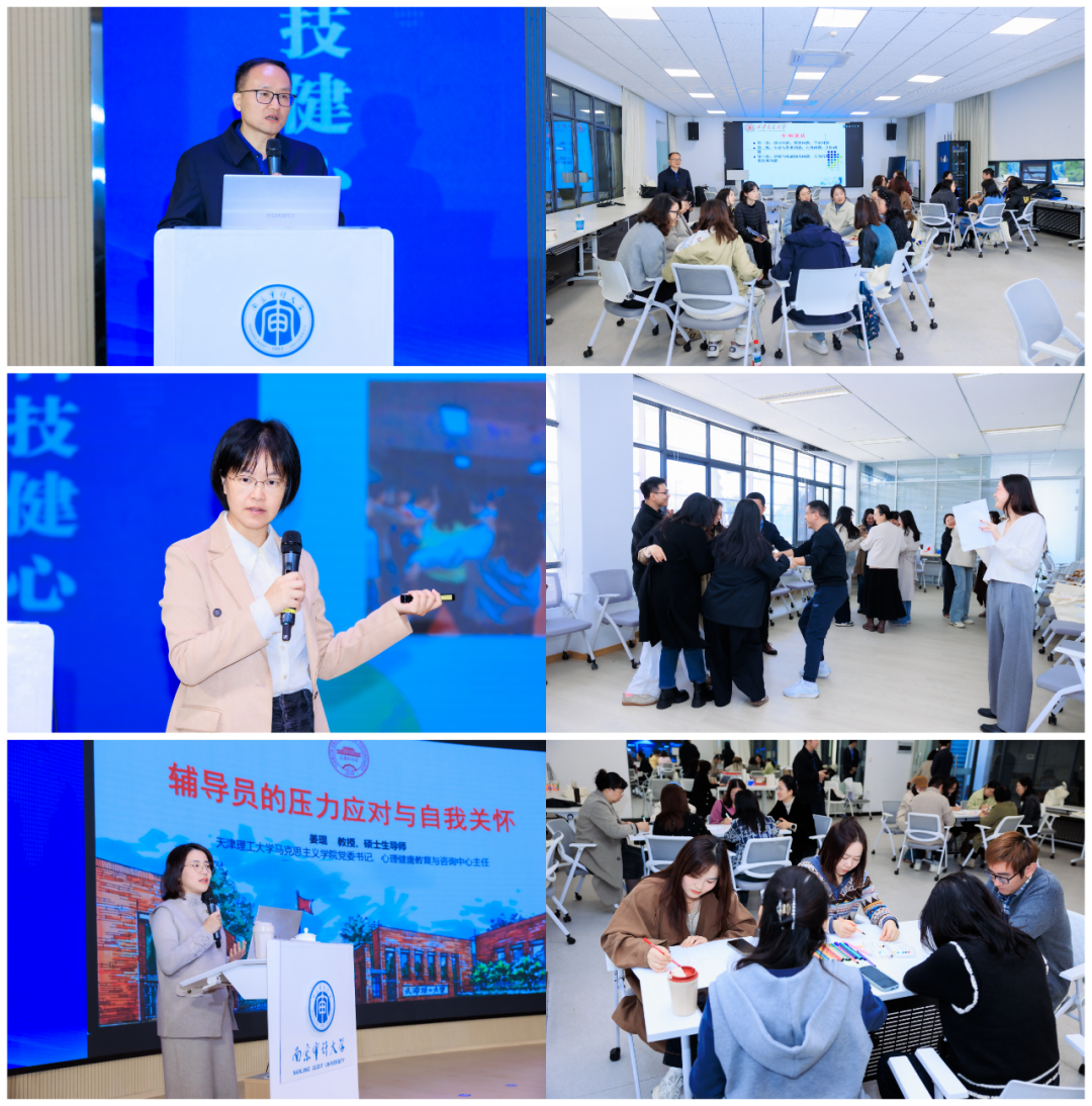 本次培训以"主题报告+体验式培训+名师工作坊+实地调研+线上课程"的形式开展。北京师范大学心理学部党委书记乔志宏,清华大学学生心理发展指导中心首席专家李焰教授,南京审计大学党委常委、宣传部部长徐波,南京审计大学心理健康教育教学部主任蔡智勇分别进行了“新时代高校学生心理健康体系建设”“心理危机学生发现及应急处置机制”“‘一站式’学生社区建设的教育逻辑”“数字化时代的心理干预新范式”的主题报告。