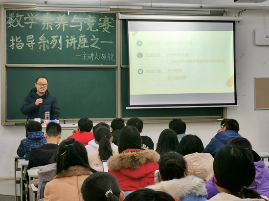首先,胡锐指出数学竞赛分为三个级别,分别为:校级数学竞赛、江苏省高等院校数学竞赛以及全国大学生数学竞赛