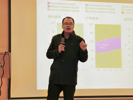 首先,王钦现场调查同学们对于未来薪资水平期望值,发现60%以上同学希望就业起薪在6000元以上。据此,王钦以工商管理专业毕业生的实际收入水平为切入点,揭示理想与现实之间的差距。接着,通过比较各国人口及GDP比例、城乡就业与产业就业状况,王钦指出当前中国正面临着大学毕业生持续增加,高质量工作岗位不足,自主就业比例逐年攀升的现状。王钦表示,创业的本质是创造价值以促进GDP的持续增长,从而真正解决就业难题。面对日益激烈的职业竞争,自主创业必将成为更多毕业生的职业选择。然后,王钦提出职业选择的3条铁律:喜欢的、擅长的、有价值的,并鼓励同学们仔细考量自身兴趣与特长,关注行业发展状况与前景,做一个有职业远见的大学生。