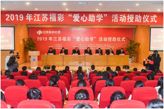 12月12日下午,2019年度江苏福彩“爱心助学”活动授助仪式在我校举行。江苏省民政厅党组成员、副厅长周恒新,江苏省教育厅党组成员、副厅长潘漫,江苏省学生资助中心主任张晓宁,中国农业银行南京分行党委书记、行长吴忠辉,我校党委副书记、校长刘旺洪出席会议,学务委员会及各书院负责人、辅导员代表、全体受助学生、在校学生代表以及来自南京师范大学等11所兄弟高校的师生代表参加仪式。授助仪式由江苏省福利彩票发行中心主任、书记李彬主持。
