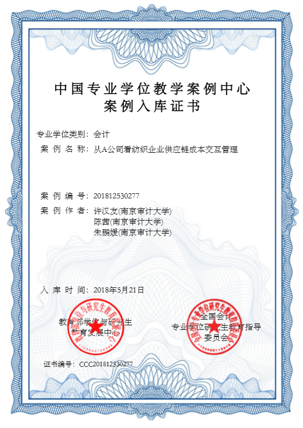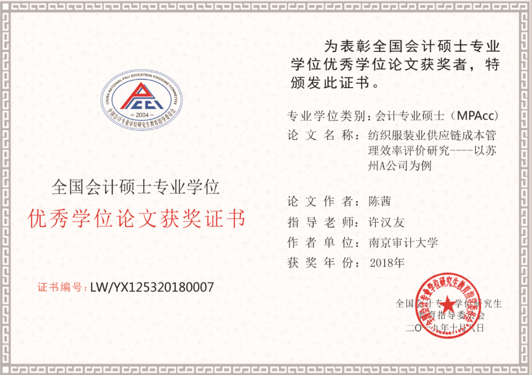在研究生实习与就业上,许老师也是非常用心。他将研究生的实习、就业与学位论文写作联动考虑。2016级研究生陈茜同学,本科是学服装设计的,但她一直有报考南审会计的情结。加入许老师的团队后,就以服装类公司作为会计研究的案例,到服装类公司实习,申报了相关的研究生创新实践课题,学位论文也以此为基础,不仅顺利答辩通过,最后还获得了全国会计专业硕士优秀论文称号。