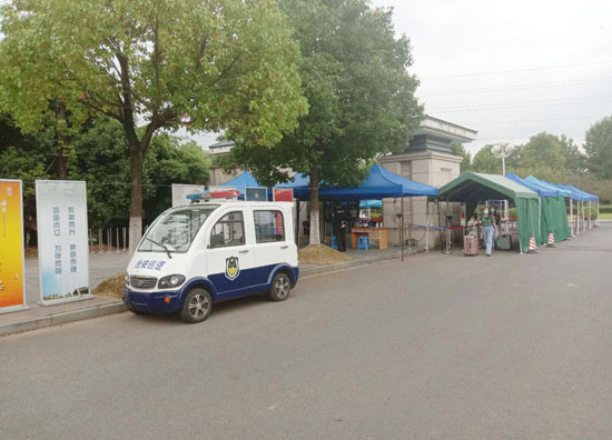 开学前,李海部长先后主持召开了3次工作部署会议,统筹安排新学期安保工作,主动压实“四个责任”,强化服务意识和安全保障意识。详实制定《2020秋学季开学学生报到日疫情管控及引导工作方案》《2020秋学季开学报到日具体工作安排》《疫情期开学报到处置流程图》等有关文件;成立交通引导组、报到区域管控组、校内秩序维护组、应急机动处置组等6个工作小组;合理规划返校专用通道,划分等待区、一次测温区、核验区、二次测温区、接驳区等区域;提前搭建体温检测帐篷通道、摆放引导标识展板、协调接驳车和应急保障车;提前开展开学报到流程实地演练等。