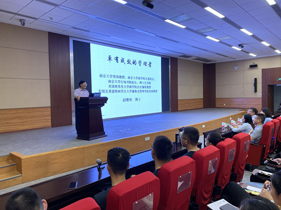 10月2日上午,应我校国际联合审计学院邀请,南京大学人文社会科学资深教授、南京大学商学院名誉院长、南京大学行知书院院长、美国克莱蒙特研究生大学德鲁克管理学院客座教授赵曙明博士为国际联合审计学院新生讲授《自我管理》第一课——《卓有成效的管理者》。本次讲座由我校党委常委、组织部部长李乾文教授主持,国际联合审计学院全体师生参听。