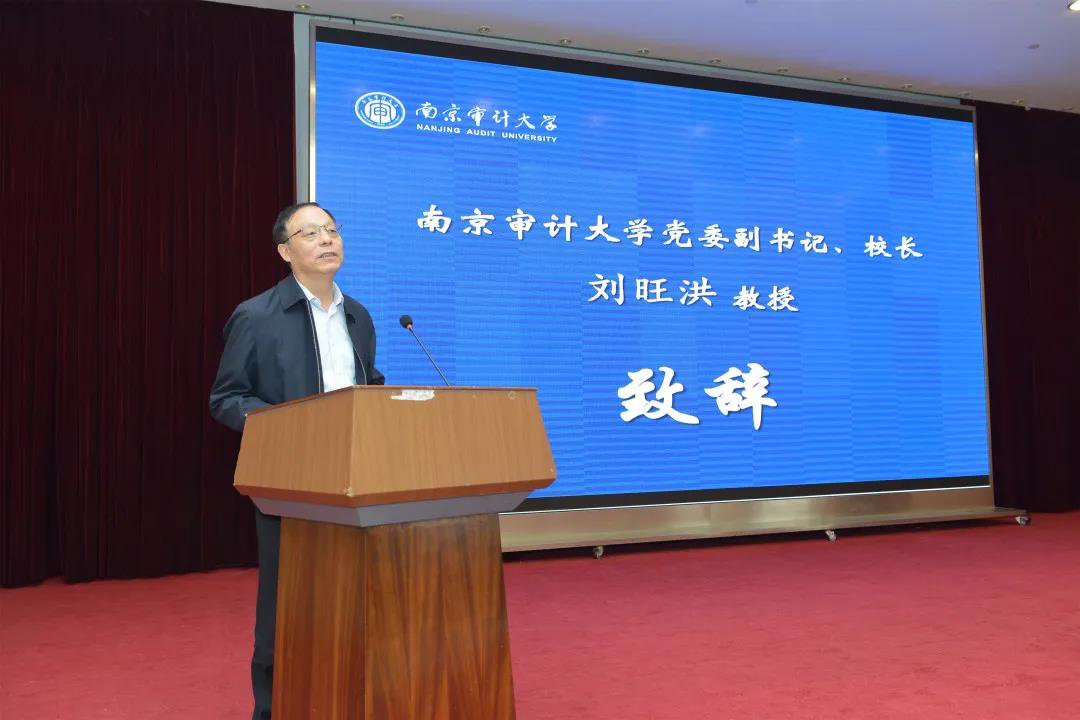 南京审计大学党委副书记、校长刘旺洪教授致开幕辞。刘旺洪首先对出席会议的各位领导、导师表示欢迎,对长期关心和支持南京审计大学法学院各项工作的领导和热心人士表示衷心的感谢。刘旺洪指出,本次法律专硕校外导师的聘任,是南京审计大学整合校内与校外资源,深化研究生培养模式改革的创新之举。随后,刘旺洪提出了法学教育亟待破解的法治人才培养的“单向度”,法学实践教学模式的“同质化”,法学教育与社会实践、法治需求的“衔接度”三个问题,而这些问题的解决离不开高水平的校外导师队伍的建设。刘旺洪还对共同构建法硕研究生培养的“南审模式”提出了三点建议,一是坚持立德树人的培养目标,贯彻德法兼修的培养要求,二是深入推进产教融合,着力培养研究生创新能力,三是加强制度构建,构筑长期稳定的法硕实践教学支撑体系。最后,刘旺洪对南审法学院与校外导师,凝聚力量、共同培养的研究生教育的未来致以殷切期待。