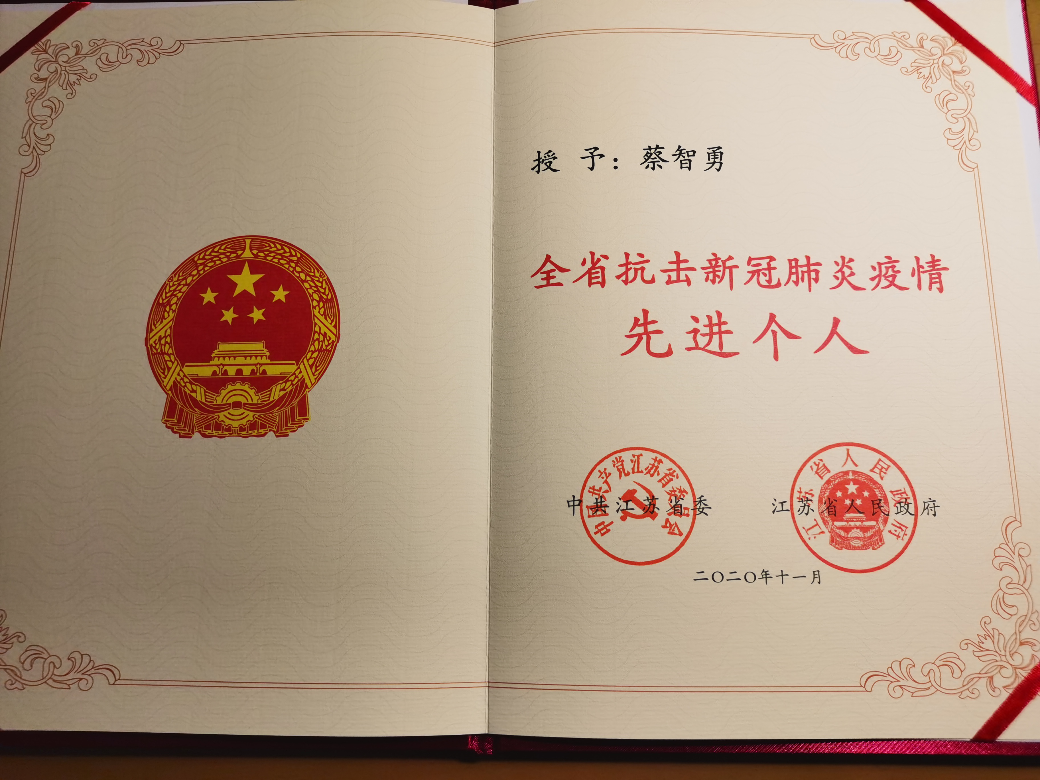 11月26日,江苏省抗击新冠肺炎疫情表彰大会在南京隆重举行,向奋战在抗击新冠肺炎疫情斗争中的先进个人和先进集体进行表彰。我校心理健康教育与指导中心主任蔡智勇荣获“全省抗击新冠肺炎疫情先进个人”荣誉称号并参加表彰大会。