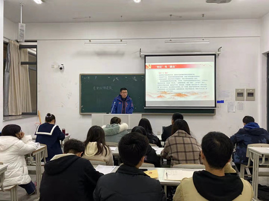 徐军带领同学们快速学习了《关于新形势下党内政治生活的若干准则》《中国共产党廉洁自律准则》《中国共产党纪律处分条例》等重要党内法规,要求同学们作为党员,必须加强对党规党纪的学习,不触碰纪律的红线与底线,同时要践行廉洁自律规范,发挥党员的先锋模范作用。