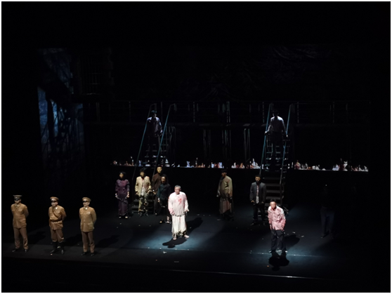 “我身上没有一件值钱的东西,只有一副近视眼镜,值几个钱。我身上的磷,仅能做四盒洋火。我愿我的磷发出更多的热和光,我希望他燃烧起来,烧掉过老的中国,诞生一个新中国!”随着恽代英铿锵有力的声音回荡在文化馆中,整场演出也进入了尾声。谢幕时,老师和同学们都含着热泪,同其他观众们一起,向剧组报以经久不息的掌声。