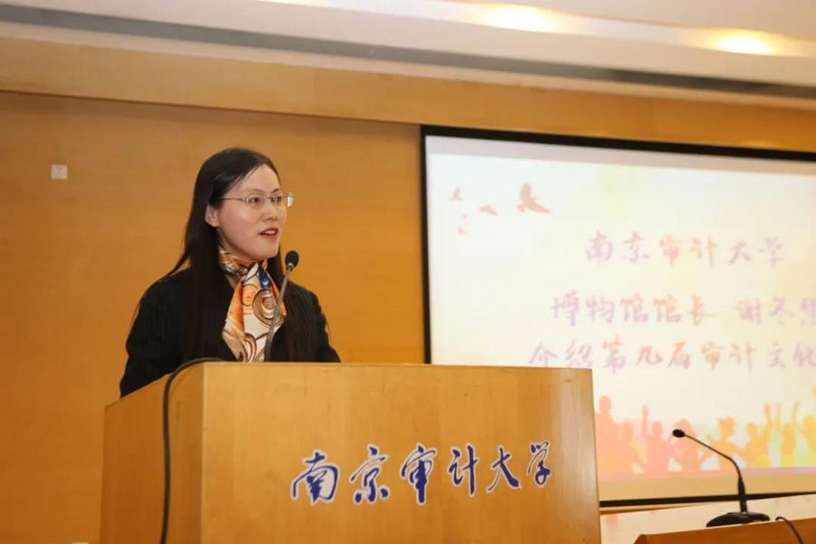 博物馆馆长(审计文化与教育研究院院长)谢冬慧对南京审计大学审计文化节的由来、发展、各项活动开展情况与取得的成效进行全面而详细的介绍。
