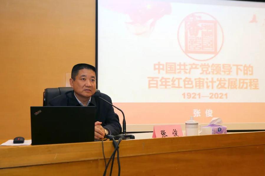 中共审计署党校常务副校长,审计署审计干部教育学院党委书记、院长张俊带来主题为“中国共产党领导下的百年红色审计发展历程”的专题讲座。