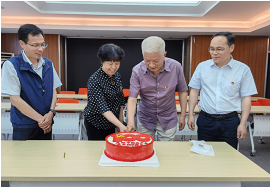 活动最后,沁园书院院长胡智强与陈祖华、张芊、吕皖一起切好“生日”蛋糕。全体师生党员一起共勉,永葆初心,永担使命,为坚持和发展中国特色社会主义、实现中华民族伟大复兴的中国梦时刻准备着,永远奋斗着。