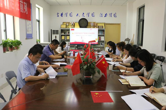 会前与会成员集中观看了《庆祝中国共产党成立100周年大会》的现场直播,谢刚领学了习近平在庆祝大会上的重要讲话精神,与会老师展开了热烈讨论。书院党委副书记刘海燕认为,中国共产党人要高举中国特色社会主义伟大旗帜,坚决维护以习近平同志为核心的党中央权威和集中统一领导,在平凡的岗位上履职尽责,践行使命担当。书院党委副书记李玉淑表示,一线的思政工作者要锤炼出鲜明的政治品格,不断传承红色精神,引导学生增强做中国人的志气、骨气和底气。老师们纷纷表示要继续弘扬光荣传统、赓续红色血脉,坚定理想信念,聚焦思政主责主业,永远把伟大建党精神继承下去、发扬光大!