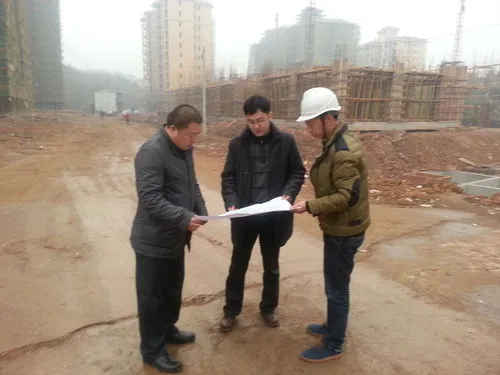 阮士君(左二)在保障性安居工程审计中查看项目建设情况