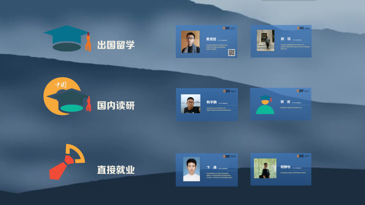 研究院邀请了黄煜堃、颜羽、韩学鹏、卞通、程静怡等五位EFIT毕业生进行线上经验分享,五位毕业生的成长路径分别包括了毕业后留学读研后就业、国内考研后就业、直接就业等不同职业规划渠道,并涉及金融相关行业就业、跨专业就业、公务员、选调生等多种就业方式。他们从各自的经历出发,回顾自己的大学职业规划,分享自己的成长故事和工作心得,并在许多方面提出了实用的建议。在交流互动环节,同学们积极提问,问题涉及课业学习、留学申请、兴趣培养、行业现状、工作面试等多个方面,五位毕业生耐心详细地进行解答,并分享了很多实例和经验。