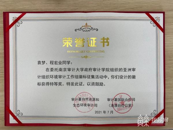 去年3月,袁梦在班级群里看见一条亚洲审计组织环境审计工作组徽标征集的消息,想着作为南审人可以参与设计,尽一份力。