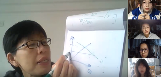 “教与学是相长的,教与学需要互动”,梁老师说。线上教学无法看见每一位同学,为保证良好的教学效果,她会增加提问,并且鼓励同学们与老师连麦。在她课上,同学们积极连线,甚至有的班级出现组团,也就是整个宿舍一起连麦的画面。同时,她还注重将课程思政有机融入课堂,比如在讲机会成本时,她列举各国疫情防控政策,总结出抗疫斗争彰显中国特色社会主义制度优越性,引导同学们形成正确的三观。