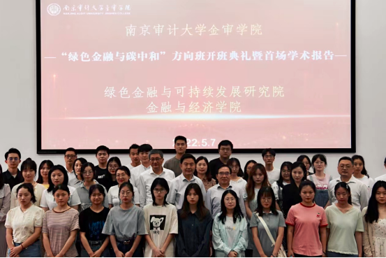5月7日,中国民办高校中首个绿色金融与碳中和方向班开班典礼暨首场学术报告在南京审计大学金审学院举行。来自中研绿色金融研究院、清华大学能源转型与社会发展研究中心、全国碳市场能力建设(上海)中心、江苏省保险学会、南京审计大学等多家单位的领导、专家和嘉宾以及线上线下300多名同学参加了开班典礼和学术报告会。