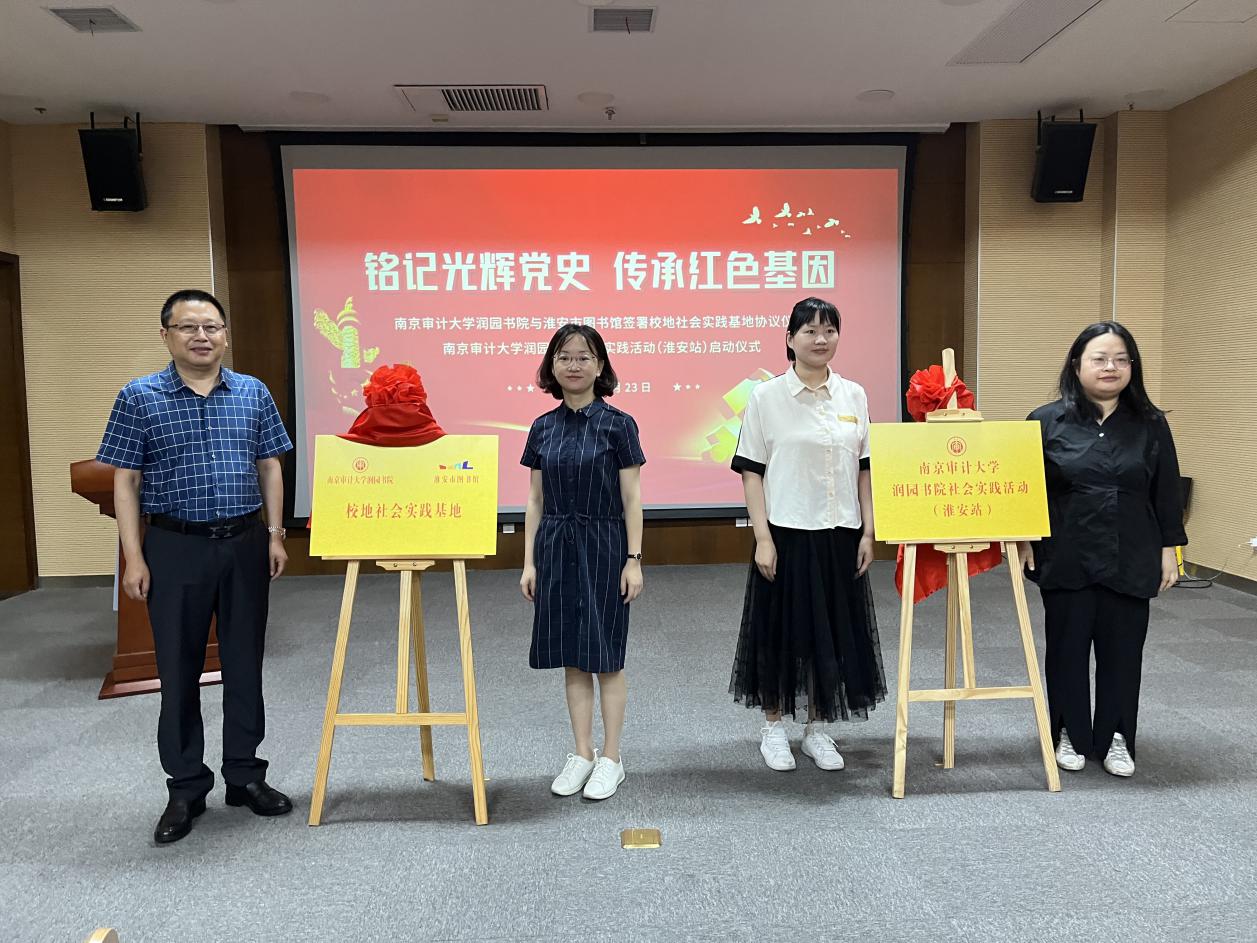 为了迎接党的二十大胜利召开,引领广大青年学子扎根中国大地了解国情民情,通过社会实践坚定理想信念、站稳人民立场、练就过硬本领、投身强国伟业,在服务经济社会发展的亲身参与中受教育、长才干、做贡献,6月23日上午,南京审计大学润园书院与淮安市图书馆共建大学生社会实践基地揭牌仪式暨“铭记光辉党史、传承红色基因”南审润园书院社会实践活动(淮安站)启动仪式在淮安市图书馆举办。