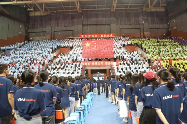 在新生代表的带领下,全体新生庄严宣誓。“用青春的风采扮靓今天的母校,用优秀的成绩贡献祖国的明天!”