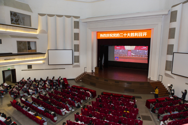 南京大学在仙林校区、鼓楼校区、浦口校区设置转播点,并部署各院系、各单位安排集中收看点。同时,食堂等场所均开通电视直播。16日当天,师生员工在仙林校区三江厅、恩玲剧场,鼓楼校区大礼堂,以及会议室、教室、实验室等场所集体收看大会盛况,共同庆祝党的二十大胜利召开。