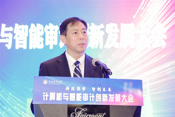 随后,中国审计学会会长孙宝厚,中国工程院院士、清华大学教授郑纬民,欧洲科学院院士、南京大学计算机主任兼人工智能学院院长周志华,中国内部审计协会会长鲍国明,审计署农业水利审计局局长姜江华,中国石化集团公司审计部副总经理周立云六位嘉宾分别从自己的专业角度,进行了致辞。