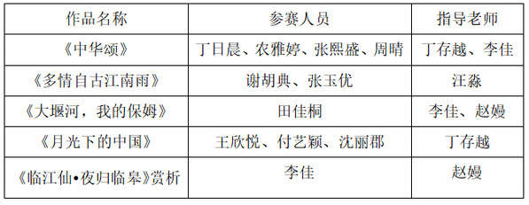 按照校语委的工作部署,校普通话水平测试中心积极宣传发动广大师生参与大赛,开展选拔、报送“江苏省中华经典诵写讲大赛”视频作品活动。经基层推荐、学校初赛、网络投票及省级评审,南京审计大学共有五个师生团队获得诵写讲大赛省级奖项。丁日晨等同学的《中华颂》、张玉优等同学的《多情自古江南雨》获得省级三等奖,田佳桐的《大堰河,我的保姆》、王欣悦等同学的《月光下的中国》获得省级优秀奖,李佳老师获得第三届江苏省教师国家通用语言文字教学能力大赛三等奖。