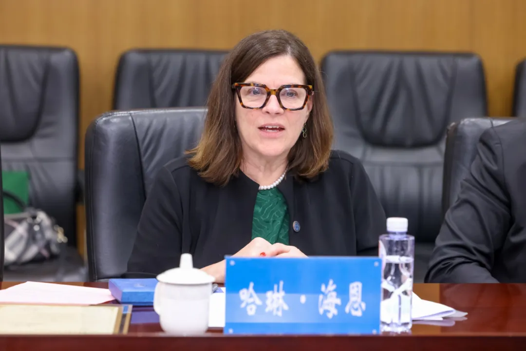 哈琳·海恩女士对南京审计大学在四十余年办学历程中取得的杰出成绩表示祝贺,并细数两校合作二十年来取得的丰硕成果,对南京审计大学在其中发挥的杰出作用表示感谢。她表示,期待进一步加强双方的合作,共同促进人才培养和科研水平的提升。